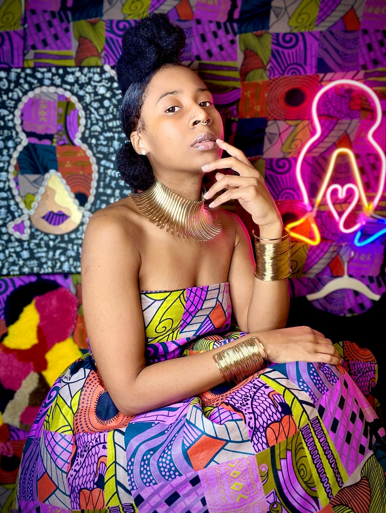 Arshayla Robinson is a multi-gifted creative visionary, creative director, and educator from Miami, FL, based in Philadelphia, PA. She expresses art as a self-taught designer, textured artist, textile artist, LED artist, illustrator and photographer. Arshayla’s creations are gorgeously and magically grounded into fusing her passions for music, art, dance, literature, fashion, African culture, the emergence of black culture and identity, and Afrofuturism. As she aims to become a beacon of light, love, and hope for the youth and her community, she is rooted in her belief that where there is darkness and pain embedded in our past and present, there is also light and love that is birthed and engraved to re-envision, realign, reinvigorate, and recreate our future.